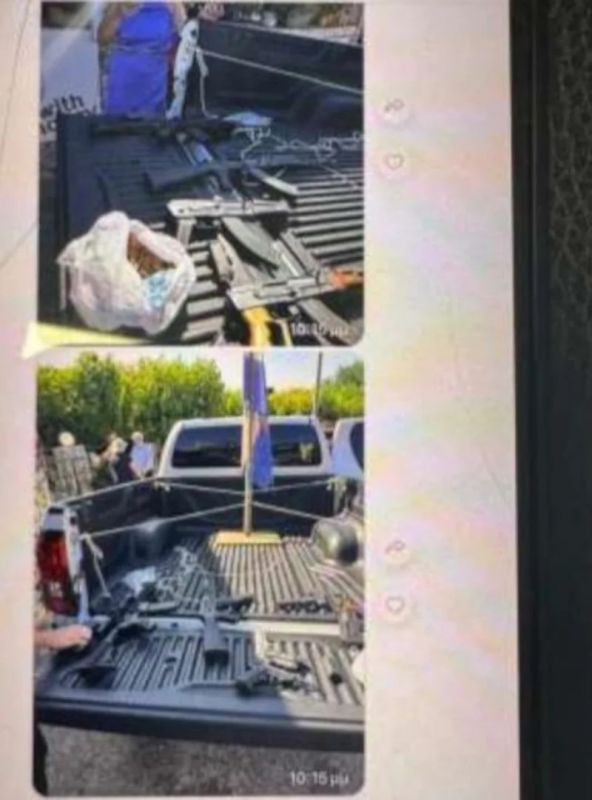 Παράλληλα, σε φωτογραφίες φαίνονται πολεμικά τυφέκια και πιστόλια καθώς και πλήθος πολεμικών φυσιγγίων πάνω σε καρότσα αγροτικού. Οι αστυνομικοί, λόγω της ενδυμασίας των ατόμων που φαίνονται, καταλήγουν στο συμπέρασμα ότι πρόκειται για κάποια κοινωνική εκδήλωση.
