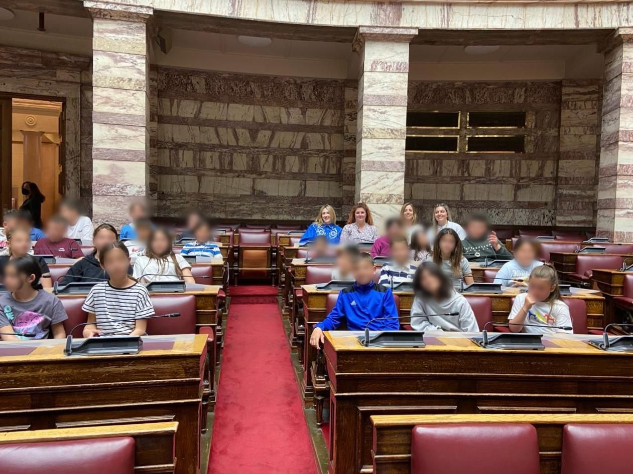 Οι ενθουσιώδεις μαθητές της Ε’ & ΣΤ’ Τάξης μαζί με τους… εξίσου ένθερμους γονείς και κηδεμόνες τους, πάντα υπό την επιτήρηση των δασκάλων, περιηγήθηκαν στο ιστορικό κτίριο της Βουλής των Ελλήνων, έμαθαν για την ιστορία του και ενημερώθηκαν για τις κοινοβουλευτικές διαδικασίες.