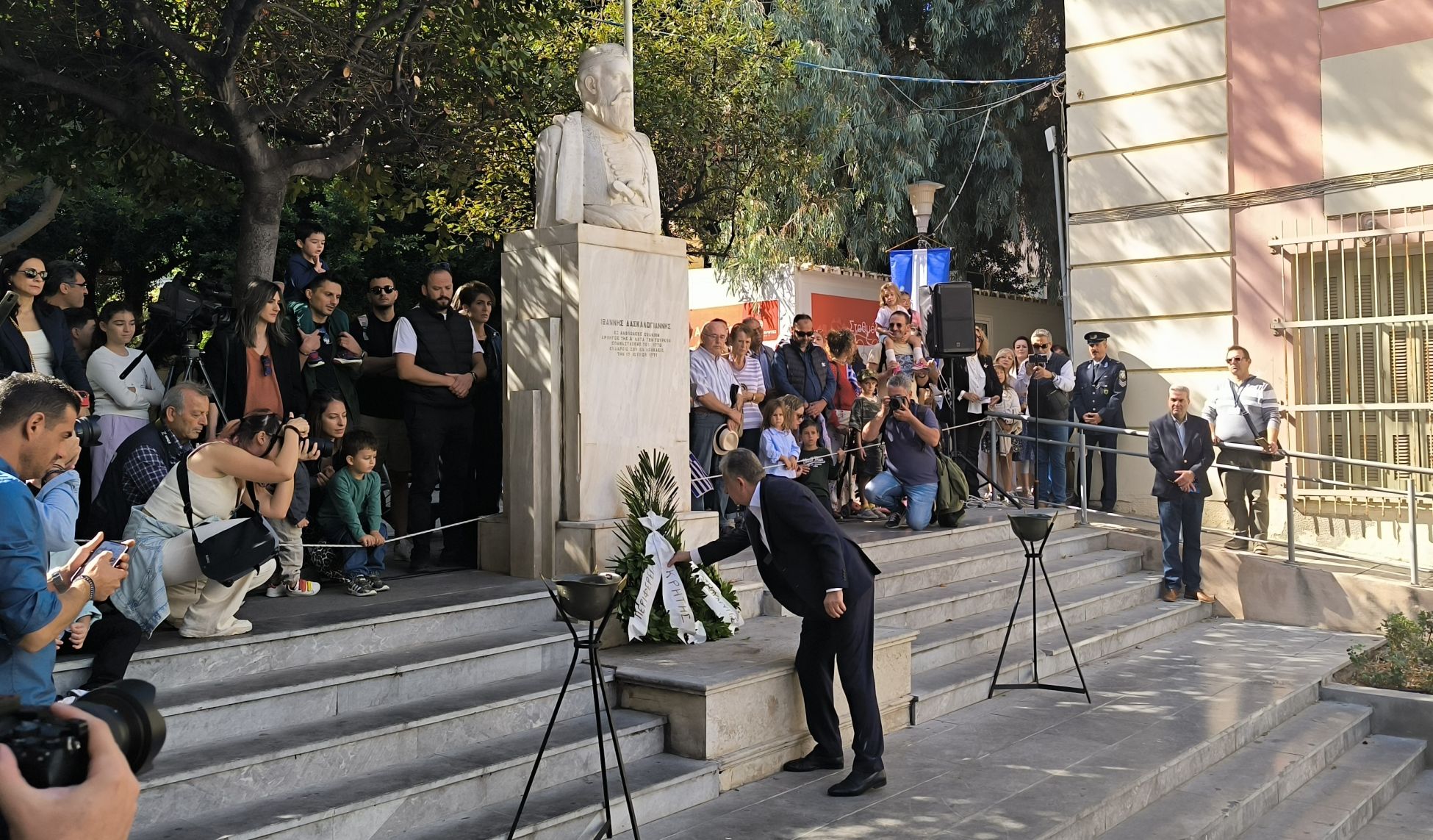 Ακολούθησε τελετή στο άγαλμα Δασκαλογιάννη όπου τελέστηκε επιμνημόσυνη δέηση από τον Σεβασμιότατο Αρχιεπίσκοπο Κρήτης κ. Ευγένιο και κατάθεση στεφάνων από την εκπρόσωπο της Κυβέρνησης τη Γενική Γραμματέα Σύγχρονου Πολιτισμού κ. Ελένη Δουνδουλάκη, τους βουλευτές Ηρακλείου Μάξιμο Σενετάκη, Χάρη Μαμουλάκη, Φραγκίσκο Παρασύρη, Λευτέρη Αυγενάκη, τον Περιφερειάρχη Κρήτης Σταύρο Αρναουτάκη, τον Δήμαρχο Ηρακλείου Αλέξη Καλοκαιρινό, τον Ανώτερο Διοικητή Φρουράς Ηρακλείου ως εκπρόσωπος των Ενόπλων Δυνάμεων και των Σωμάτων Ασφαλείας, Εκπαιδευτικών Ιδρυμάτων, κομμάτων, Αποστράτων Σωμάτων Ασφαλείας, εκπροσώπους φορέων, αντιστασιακών οργανώσεων και θυμάτων πολέμου.