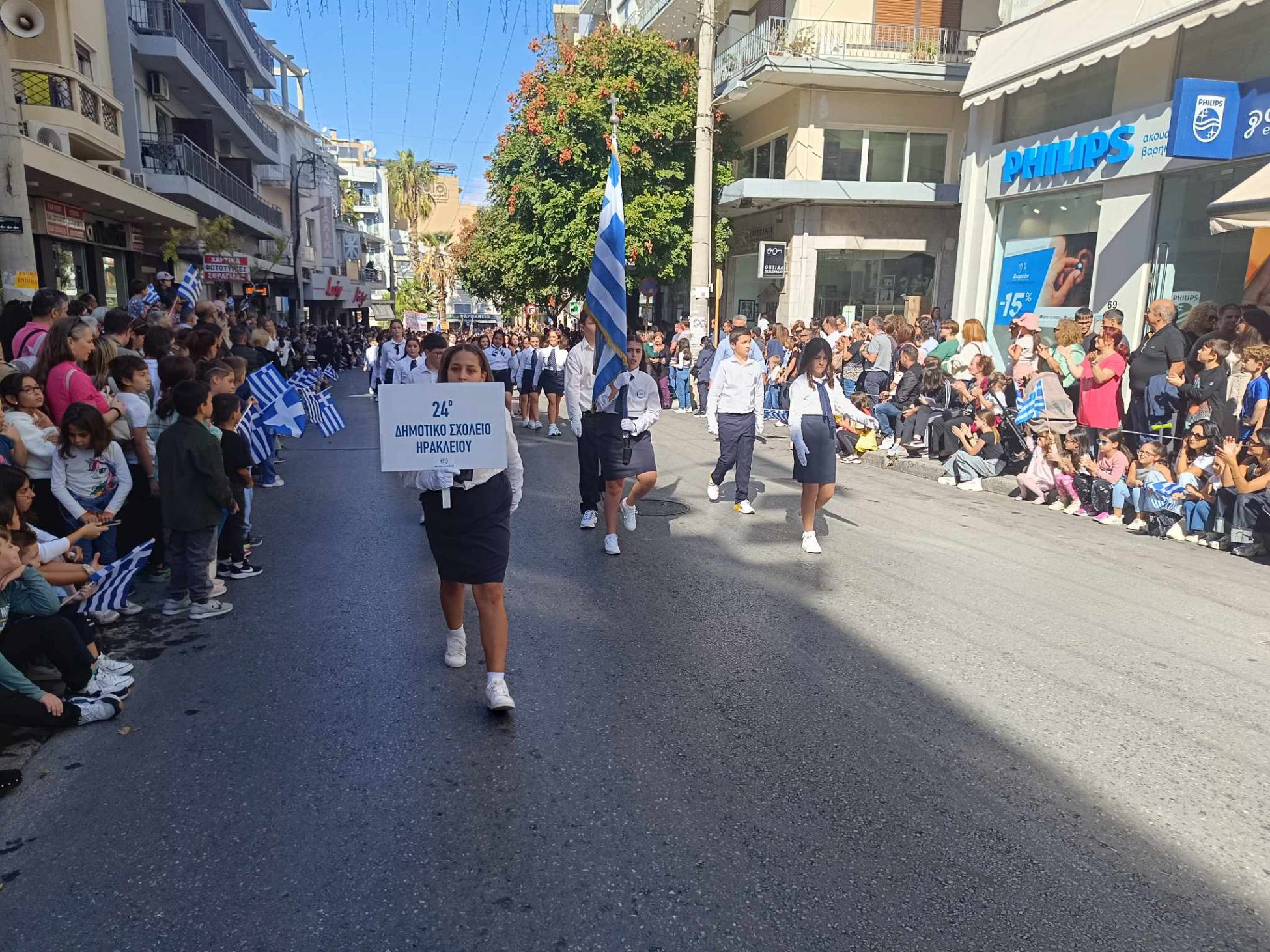 Πλήθος κόσμου βρέθηκε από νωρίς το πρωί στο κέντρο του Ηρακλείου, προκειμένου να παρακολουθήσει την μαθητική και στρατιωτική παρέλαση της 28ης Οκτωβρίου, με σύμμαχο τον εξαιρετικό καιρό που επικρατεί.