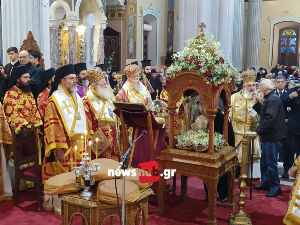 Η πανηγυρική Θεία Λειτουργία τελέσθηκε προεξάρχοντος του Σεβασμιωτάτου Αρχιεπισκόπου Κρήτης κ. Ευγενίου με συλλειτουργούς Μητροπολίτες μέλη της Ιεράς Επαρχιακής Συνόδου της Εκκλησίας της Κρήτης που βρέθηκαν στο Ηράκλειο για τη μεγάλη γιορτή.