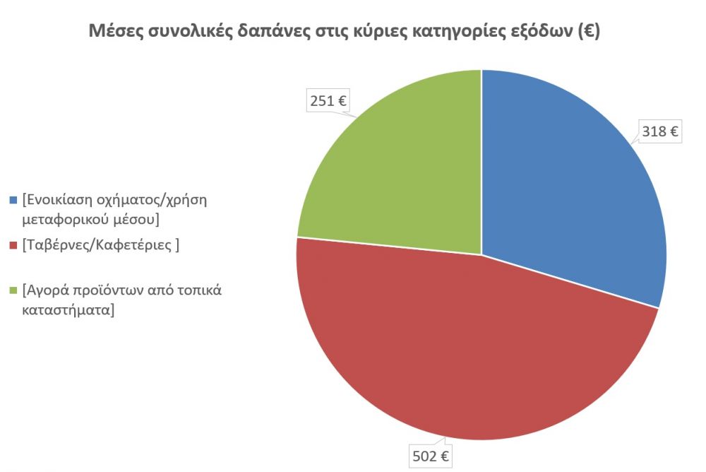 Σε αυτό το σημείο πρέπει να αναφερθεί ότι και φέτος συνεχίζεται η καταγραφή της περυσινής εξαιρετικής περιόδου σε σχέση με το μέγεθος της μέσης δαπάνης που πραγματοποιεί ο επισκέπτης, η οποία αποτέλεσε ρεκόρ. Οι μέσες δαπάνες που παρατηρούνται στις κύριες κατηγορίες εξόδων έως τώρα δεν διαφέρουν καθόλου ή σημαντικά από το 2022. Οι μέσες δαπάνες για εστίαση (~500 €) και αγορές προϊόντων (~251 €) καταγράφονται σε υψηλά επίπεδα, παρόμοια του 2022, ενώ οι δαπάνες ενοικίασης οχήματος είναι σταθερά πάνω από 315 €.