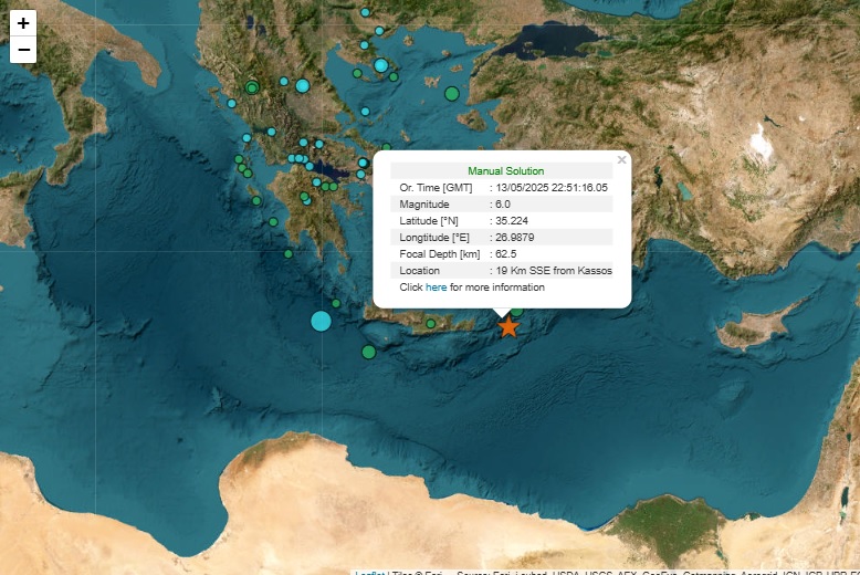 Αξίζει να επισημανθεί πως στη διάρκεια της χθεσινής ημέρας, στις 13 Μαϊου, είχε δώσει έναν ακόμη σεισμό που είχε γινει αισθητός στα ανατολικά, της τάξης των 3.8 βαθμών της κλίμακας Ρίχτερ. Μια δόνηση που ειχε καταγραφεί στις 11.19 το πρωί, περίπου στην ίδια θαλάσσια περιοχή, με εστιακό βάθος τα 28.1 χλμ.