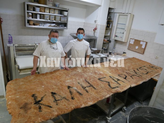 Λαγάνα 2 μέτρων έφτιαξε ένας αρτοποιός στα Χανιά.