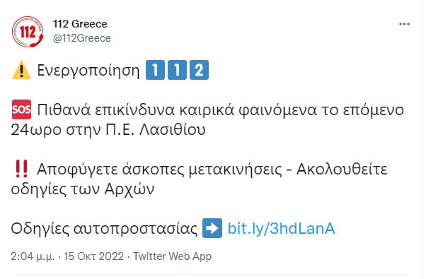 Μήνυμα από το 112 για το Λασίθι, αφού το Ηράκλειο, χωρίς προειδοποίηση, βίωσε την τραγωδία
