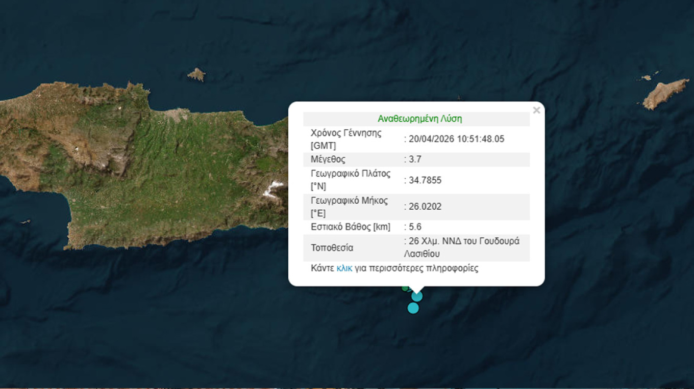 Νέος σεισμός ανοιχτά του Λασιθίου