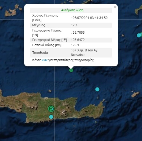 Ενώ είχαμε έναν ακόμη σεισμοί που έγινε 67 χλμ από τον Αγιο Νικόλαο, στο ύψος της Σαντορίνης σημερα νωρίς το πρωί.