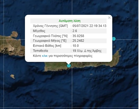 Και μετασεισμοί μετά τα 4.1 Ρίχτερ στα νότια του Ν. Ηρακλείου- Νεα δόνηση 3.5 Ρίχτερ
