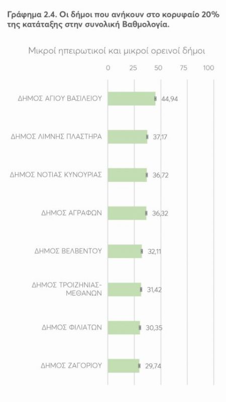 Πρωτιά κατέγραψε ο Δήμος Αγίου Βασιλείου στο συνολικό Δείκτη Αποτελεσματικότητας Δήμων στην κατηγορία Μικροί Ηπειρωτικοί Και Μικροί Ορεινοί Δήμοι, σύμφωνα με την ετήσια έρευνα που δημοσίευσε σήμερα το Κέντρο Φιλελεύθερων Μελετών (ΚΕΦΙΜ) σε συνεργασία με το Κέντρο Διεθνούς και Ευρωπαϊκής Πολιτικής Οικονομίας και Διακυβέρνησης (ΚεΔΕΠΟΔ) του Τμήματος Πολιτικής Επιστήμης και Διεθνών Σχέσεων του Πανεπιστημίου Πελοποννήσου