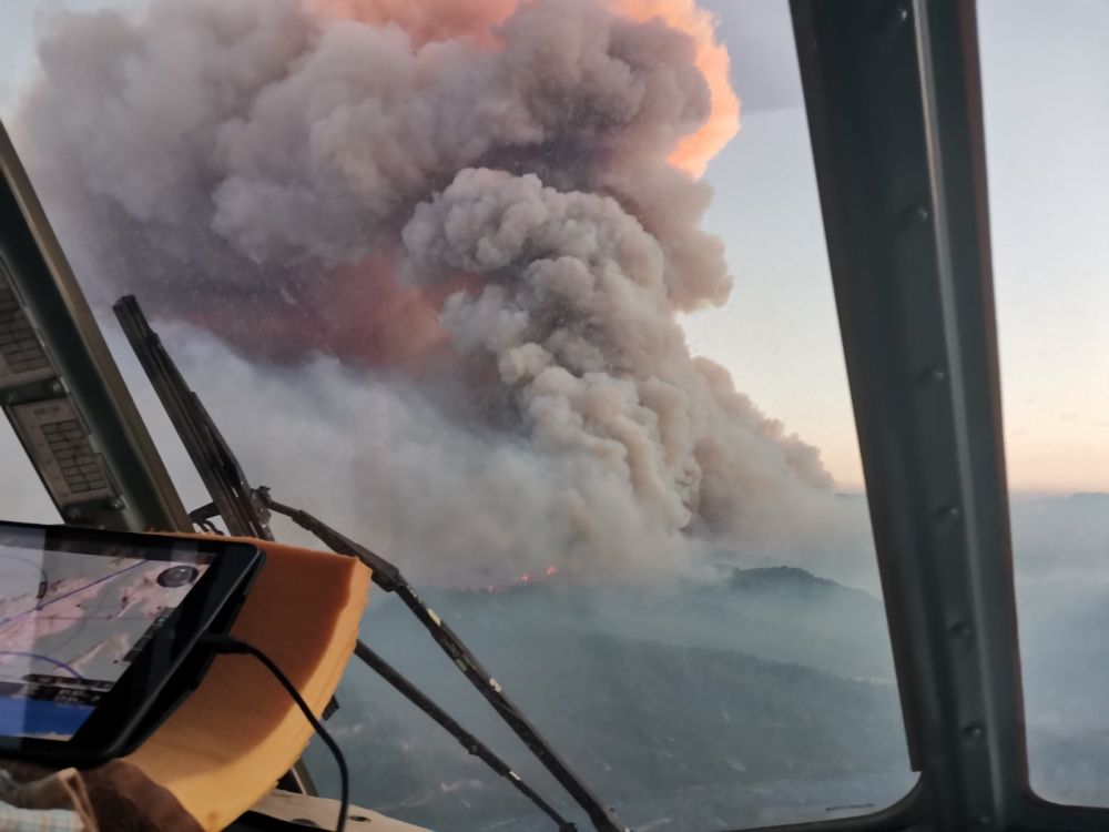Ένας δικός μας άνθρωπος, ο Γιώργος Χαλκιαδάκης, επιχειρεί αυτές τις δύσκολες μέρες στις πυρκαγιές της Εύβοιας από τη θέση του πληρώματος ελικοπτέρου Μ8 ΑΜΤ.