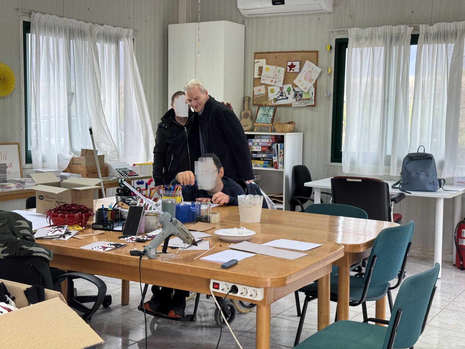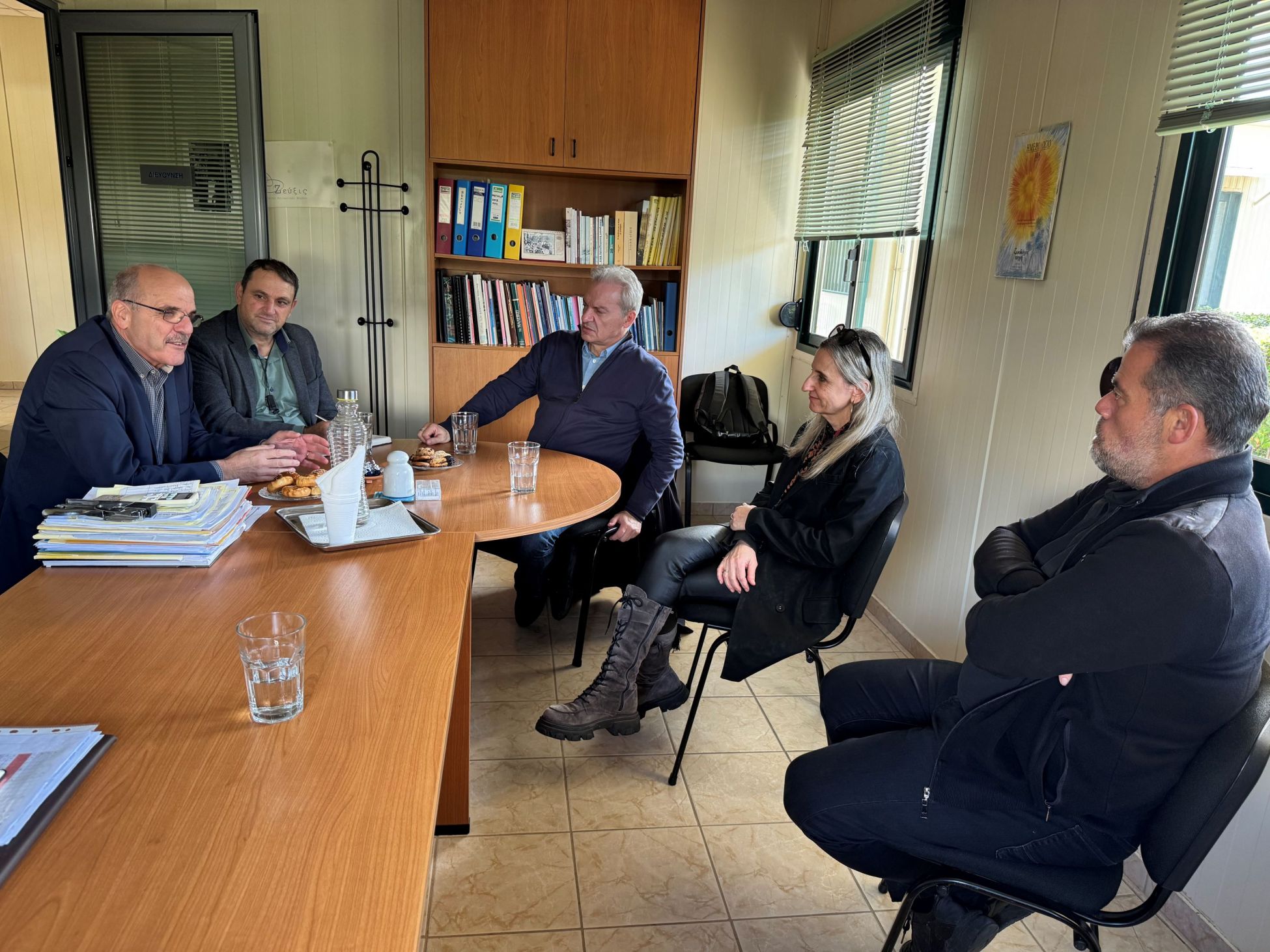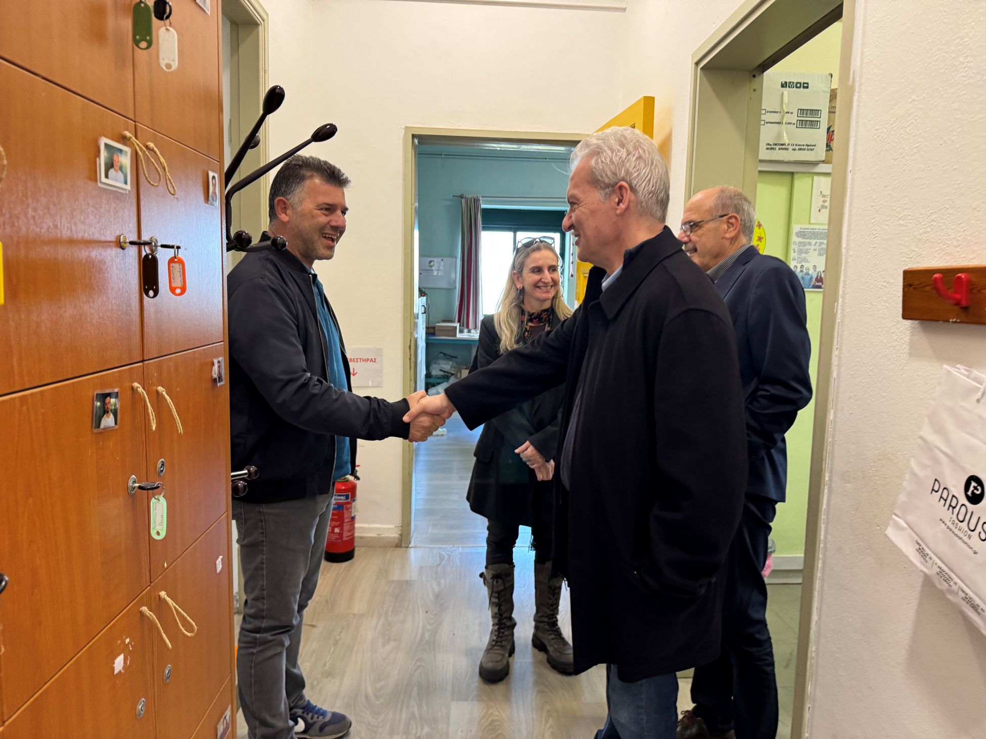 Ο Αλέξης Καλοκαιρινός και ο Γιώργος Τσαγκαράκης συζήτησαν με την Πρόεδρο του Δ.Σ. του Κέντρου Άννα Φερετζάκη, τον Διευθυντή και τον Αναπληρωτή Διευθυντή Χρήστο Τζαμούση και Νίκο Παπαδάκη αντίστοιχα, με εκπαιδευτικούς και ωφελούμενους της δομής, αντάλλαξαν ευχές ενόψει των εορτών και δέχθηκαν ως δώρο ένα όμορφο πήλινο καραβάκι κατασκευασμένο από τα μέλη του Κέντρου.