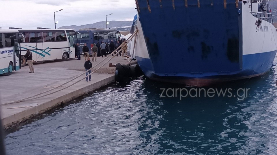 Tα πρώτα λεωφορεία ήδη βρίσκονται στο λιμάνι της Παλαιόχωρας, ώστε να μεταφέρουν τουες μετανάστες από το πλοίο Σαμαριά, στο οποίο έμεναν προσωρινά τις προηγούμενες ημέρες, προς το λιμάνι της Σούδας προκειμένουν να ταξιδέψουν για την Αθήνα.