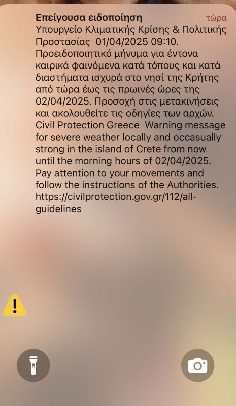 Λίγο μετά τις 9 το πρωί το 112 έστειλε μήνυμα για έντονα καιρικά φαινόμενα στην Κρήτη ζητώντας προσοχή στις μετακινήσεις