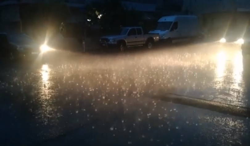 Η βροχή παρέσυρε το προστατευτικό στηθαίο ταράτσας το οποίο με τη σειρά του συμπαρέσυρε το μπαλκόνι του πρώτου ορόφου του κτιρίου. Τα υλικά από το στηθαίο και το μπαλκόνι έπεσαν πάνω σε δύο σταθμευμένα οχήματα. Στο σημείο έφτασαν ανδρες της Πυροσβεστικής, η ΕΛ.ΑΣ. αλλά και ανδρες της ΔΕΗ.