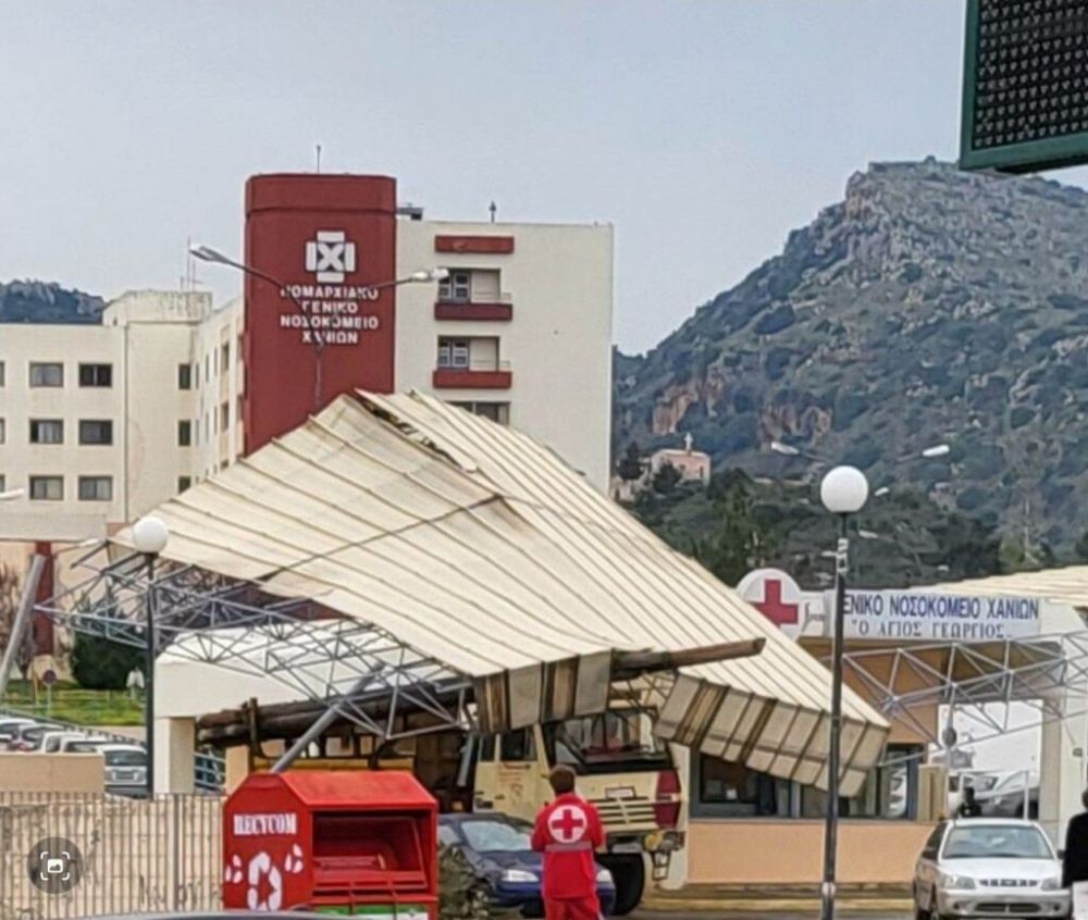 Λίγες ώρες μετά την άσκηση εκκένωσης του νοσηλευτικού ιδρύματος λόγω σεισμού, ένα φορτηγό στην προσπάθεια του να βγει από το χώρο του Νοσοκομείου γκρέμισε την κεντρική πύλη εισόδου, όπως φαίνεται στις φωτογραφίεςτης ΕΡΤ Χανίων.