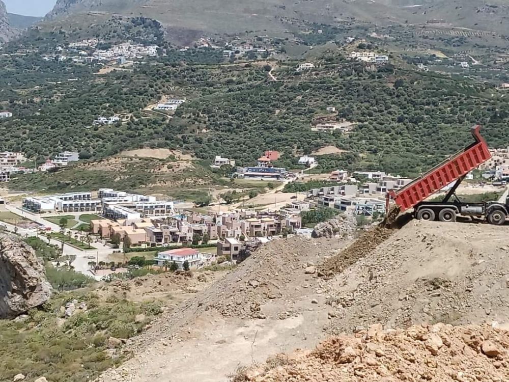 Συνεχίζονται και σήμερα με πυρετώδεις ρυθμούς, όπως φαίνεται και στο σχετικό βίντεο, οι εργασίες στον Παλίνγκρεμο του Πλακιά στο Ρέθυμνο προκειμένου να ανεγερθεί ξενοδοχειακή μονάδα, πάνω ακριβώς από το αναρριχητικό πεδίο με τη μεγάλη γεωλογική σημασία.