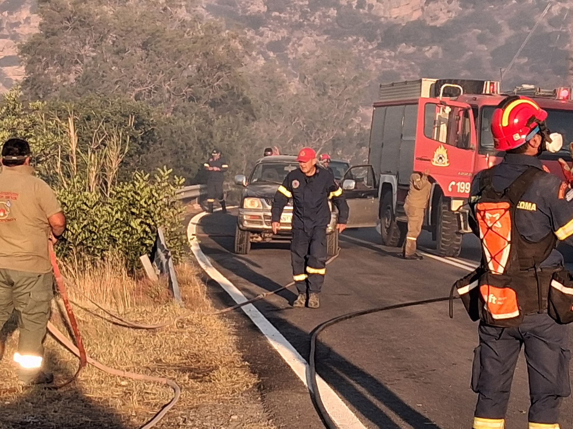 Τη μάχη με τις φλόγες συνεχίζουν να δίνουν περισσότεροι από 250 πυροσβέστες με 50 πυροσβεστικά οχήματα, ενώ ρίψεις νερού πραγματοποιησαν καθόλη τη διάρκεια της ημερας 10 πυροσβεστικά ελικόπτερα. Αργά το απόγευμα η ένταση των ανέμων υποχώρησε και η εικόνα που παρουσιάζει η πυρκαγιά είναι βελτιωμένη.