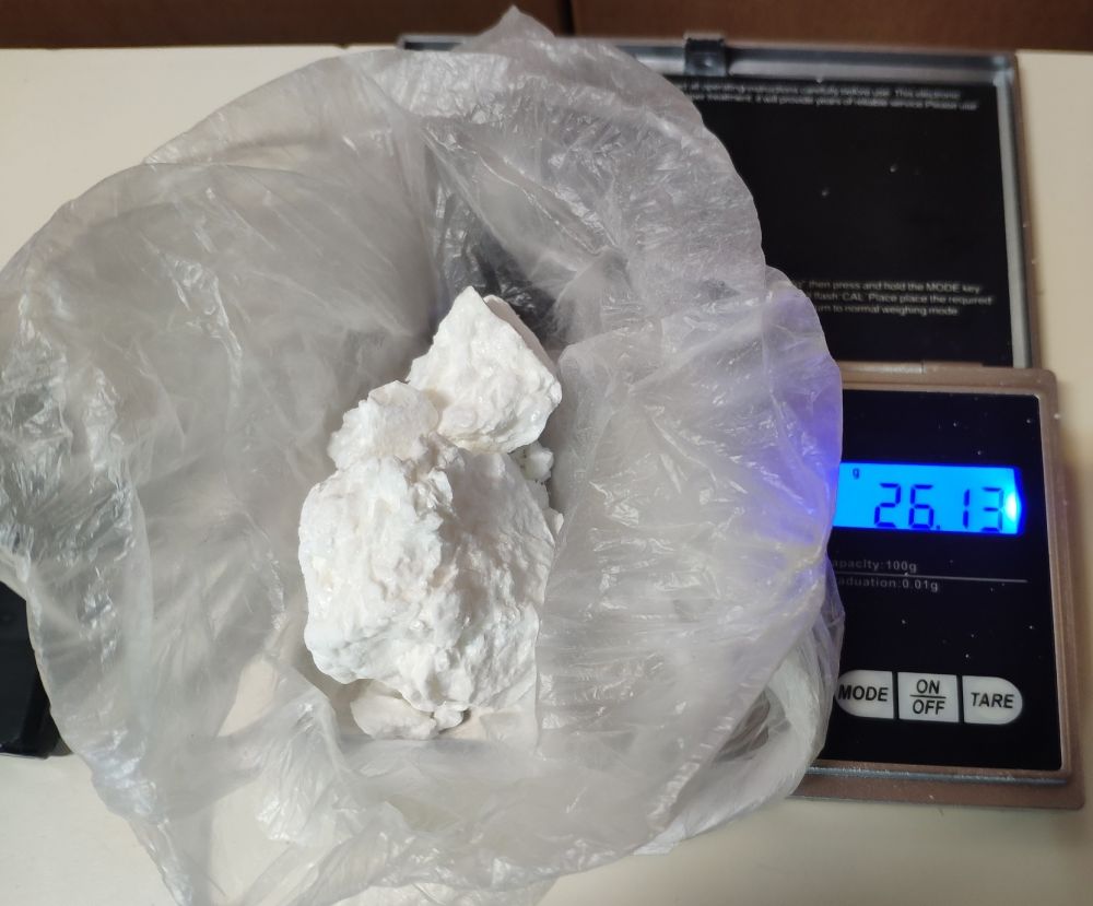 26 γραμμάρια κοκαΐνης σε μορφή βράχου και μια ηλεκτρονική ζυγαριά ακριβείας
