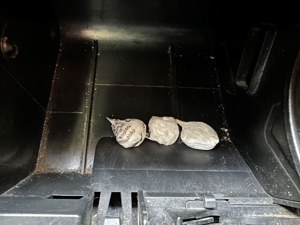 Ακολούθησε ακινητοποίηση του οχήματος και σε έλεγχο που πραγματοποιήθηκε σε αυτό βρέθηκαν επιμελώς κρυμμένα 8 ισοβαρείς αυτοσχέδιες συσκευασίες «φιξάκια», περιέχουσες κοκαΐνη, συνολικού βάρους 5,6 γραμμαρίων και ένα κινητό τηλέφωνο.