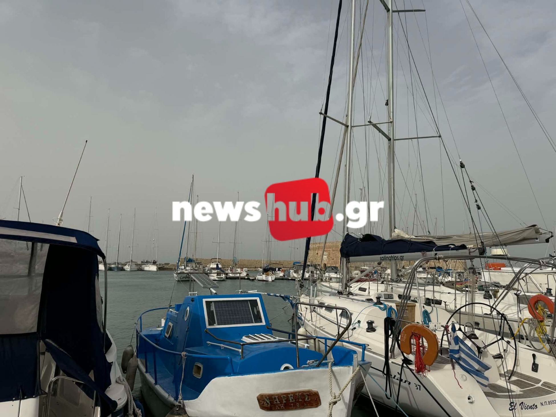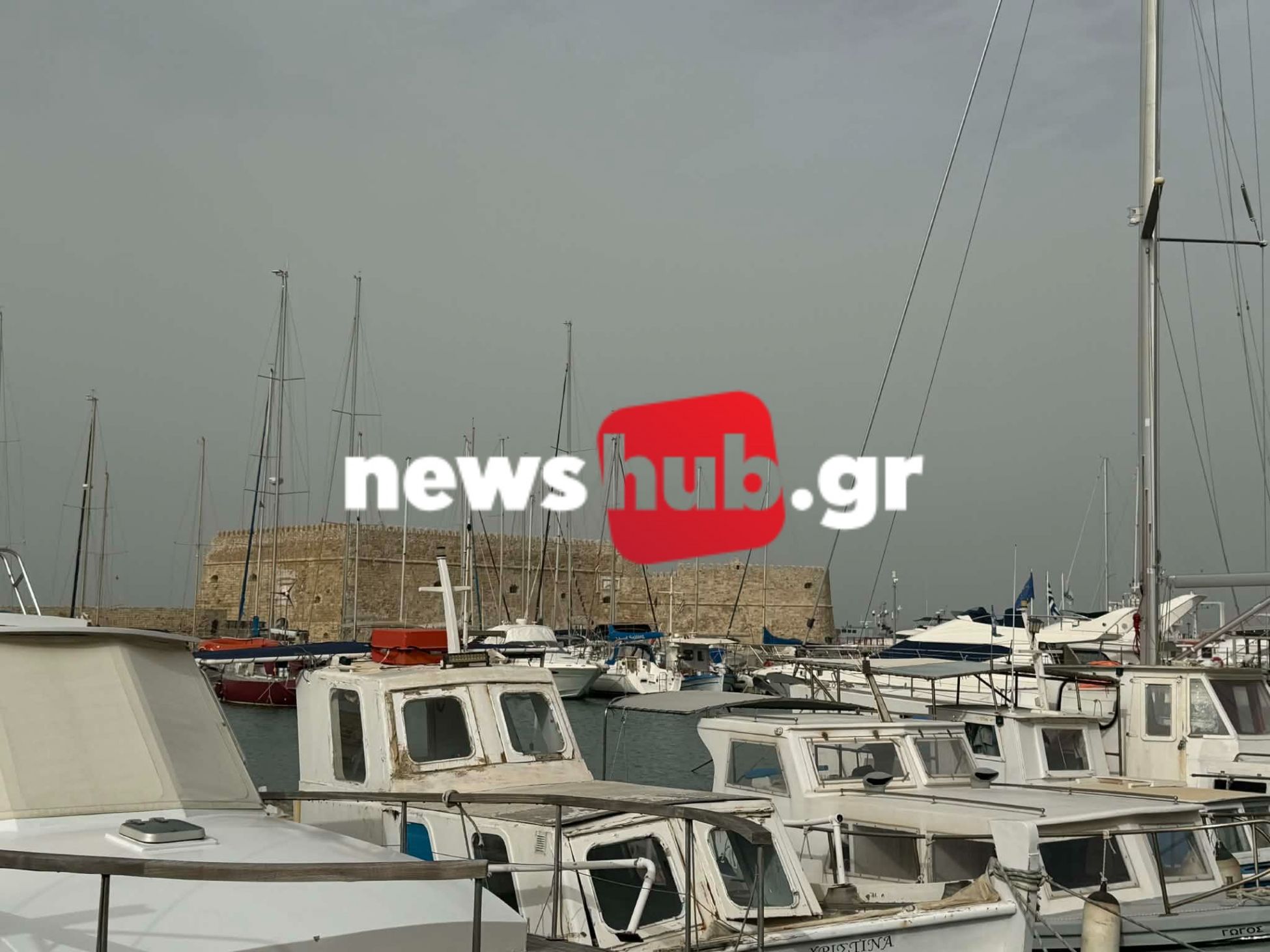 Η ορατότητα στο Ηράκλειο είναι εξαιρετικά περιορισμένη, με το τοπίο να θυμίζει «κρανίου τόπο». Είναι ενδεικτικό πως η νήσος Ντία έχει κυριολεκτικά «χαθεί» από τον ορίζοντα, καλυμμένη από το πυκνό πέπλο σκόνης που έχει απλωθεί πάνω από το Κρητικό Πέλαγος.