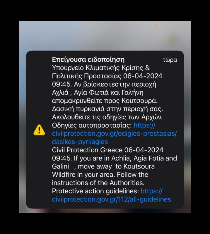 Νωρίτερα με μηνύματα από το 112 ζητήθηκε να εκκενωθούν οι οικισμοί Μαύρος Κόλυμπος, Αχλιά, Αγία Φωτιά και Γαλήνη με τους κατοίκους να ζητείται να κινηθούν προς τον Κουτσουρά.