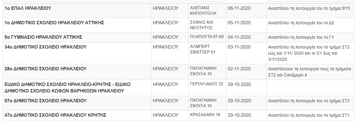 Δείτε τον χάρτη του iMEdD Lab για τα σχολεία και τα τμήματα που τελούν σε καθεστώς αναστολής λειτουργίας: