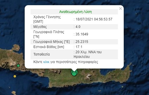 Σεισμική δόνηση με το καλημέρα νότια-νοτιοανατολικά του Ηρακλείου