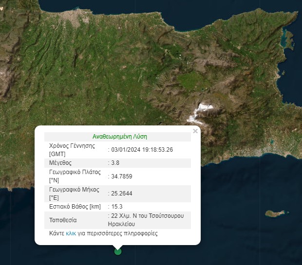 Σεισμός 3,8 ρίχτερ ταρακούνησε τις νότιες περιοχές του Ηρακλείου