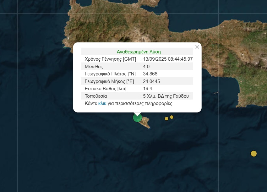 Σεισμός 4 Ρίχτερ ανοιχτά της Γαύδου