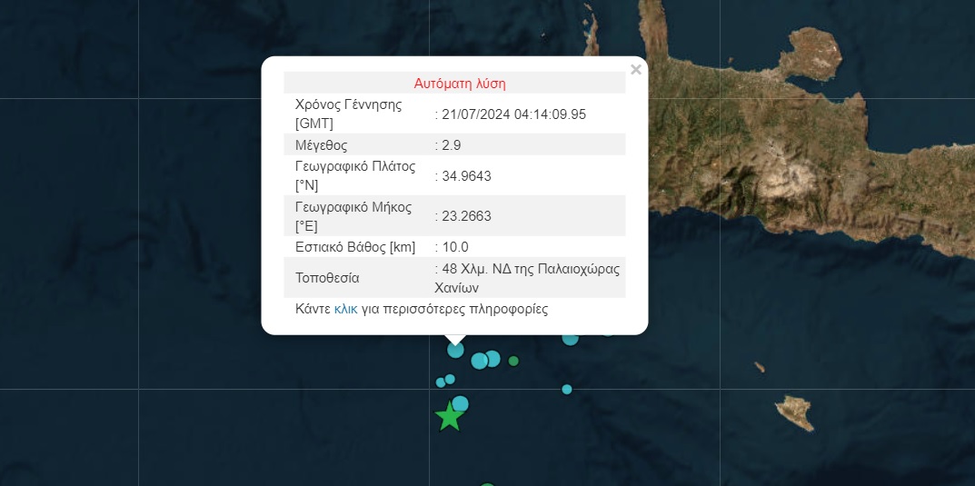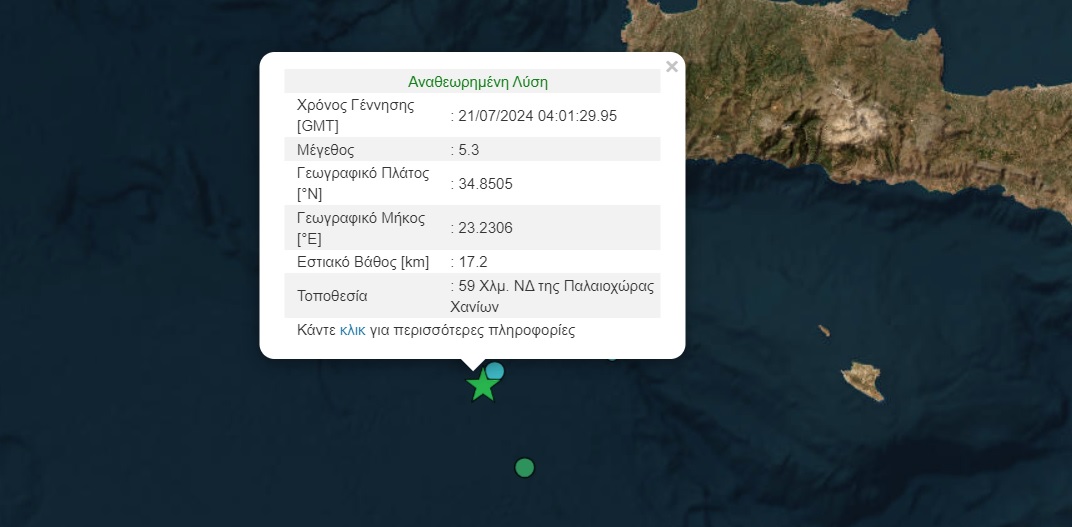 Σεισμός με το… καλημέρα στην Κρήτη - 5,3 Ρίχτερ νοτιοδυτικά της Παλαιοχώρας Χανίων