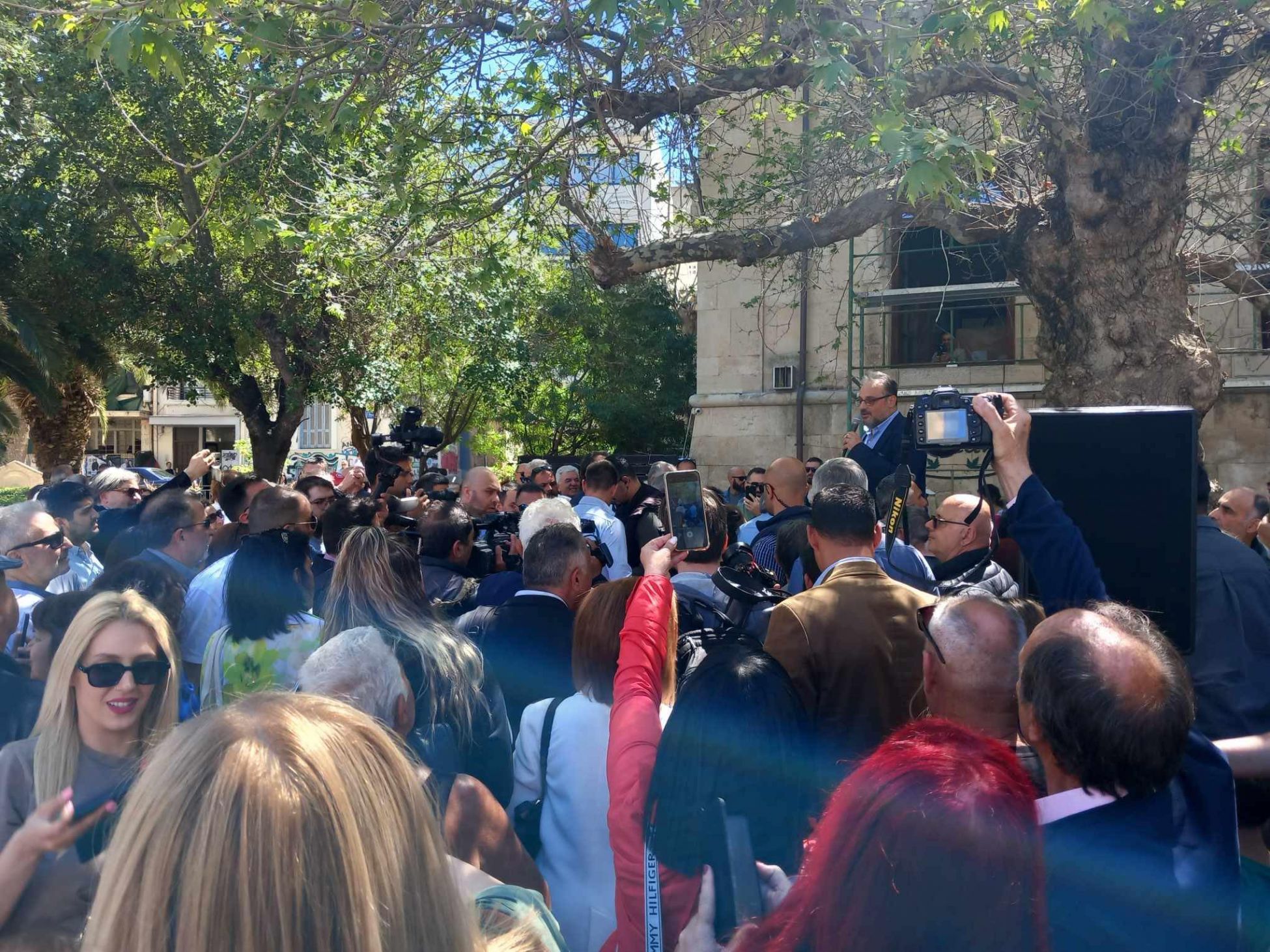 Στην πλατεία Αγίου Τίτου από νωρίς τον περίμενε κόσμος να τον δει από κοντά και να τον ακούσει.