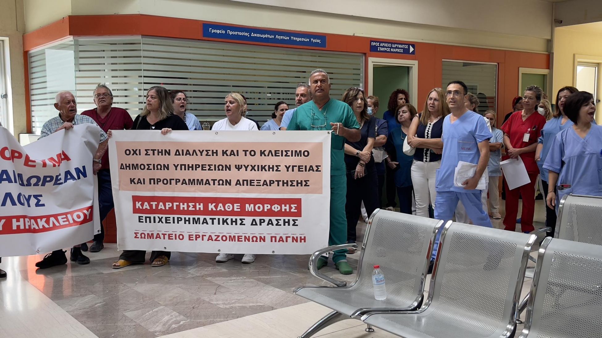 Οταν εκείνος μπήκε στο νοσοκομείο δεχτηκε τα πυρά τους, συνοδευόμενος από το βουλευτή Κ. Κεφαλογιάννη και τον διοικητή της ΥΠΕ Κρήτης Ν. Παπαβασιλείου.