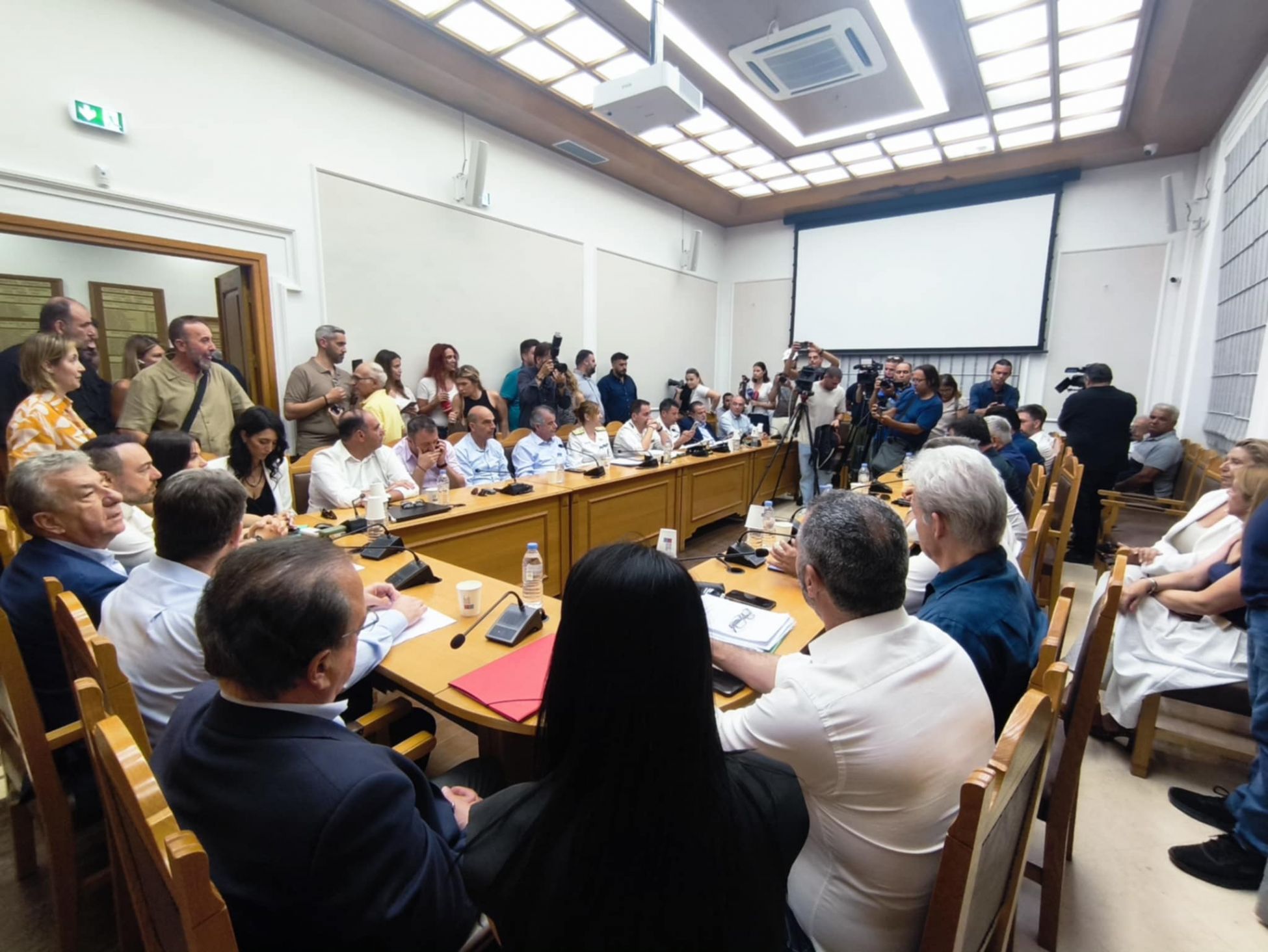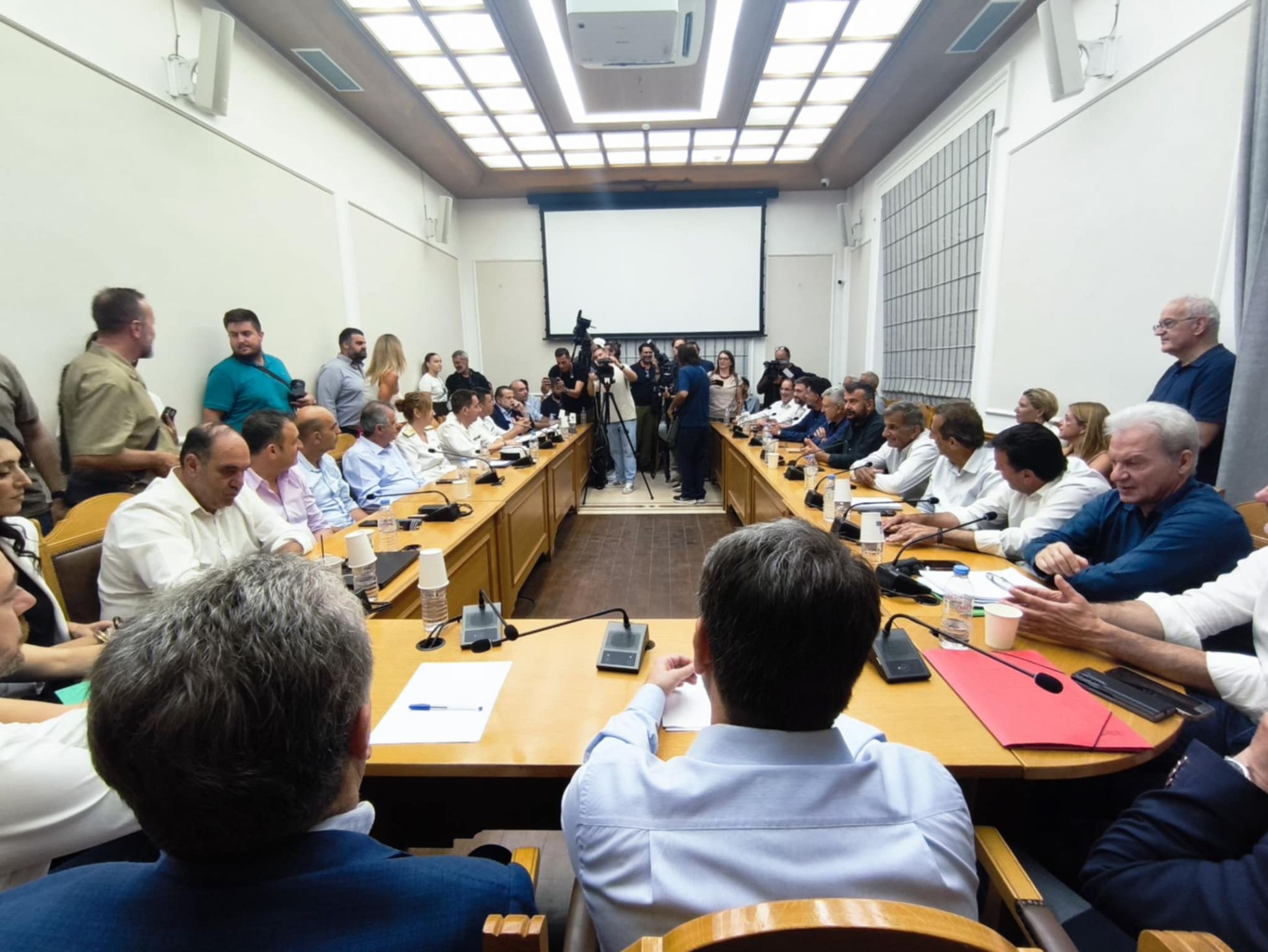 Μετά το τέλος της σύσκεψης με τη συμμετοχή του προέδρου του ΠΑΣΟΚ, πραγματοποιείται μια ακόμη σύσκεψη της ολομέλειας των δημάρχων για το ίδιο θέμα.