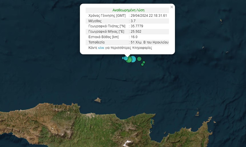 Ταρακούνησε ο Εγκέλαδος με 3,7 Ρίχτερ βόρεια και νοτιοδυτικά της Κρήτης