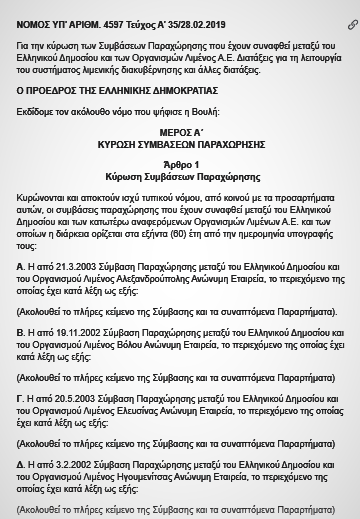 (Αυτό είναι το ΦΕΚ της απόφασης για το λιμάνι)