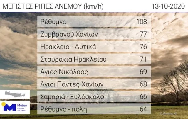 Το πέρασμα του ψυχρού μετώπου από τη χώρα μας συνοδευόταν από ισχυρούς νότιους ανέμους, οι οποίοι επηρέασαν και την Κρήτη τις πρώτες πρωινές ώρες της Τρίτης 13/10.