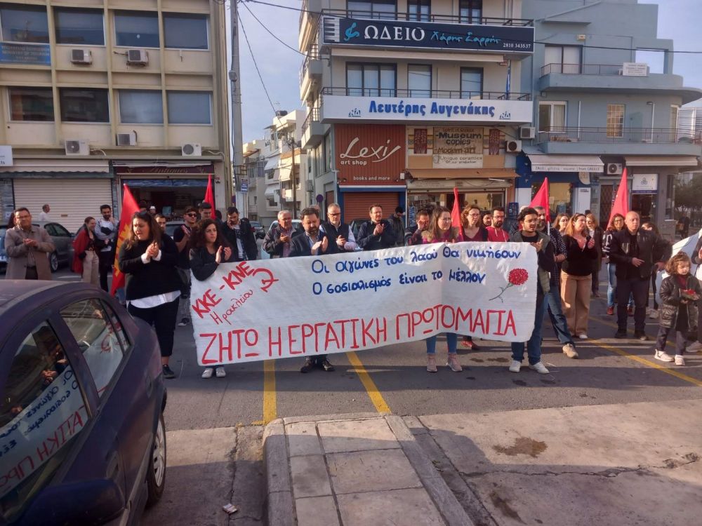 Οι μετέχοντες στην συγκέντρωση κατέθεσαν στεφάνια στα σημεία που έπεσαν στην πόλη του Ηρακλείου οι αγωνιστές της εργατικής τάξης κι ακολούθησε πορεία στο κέντρο της πόλης.