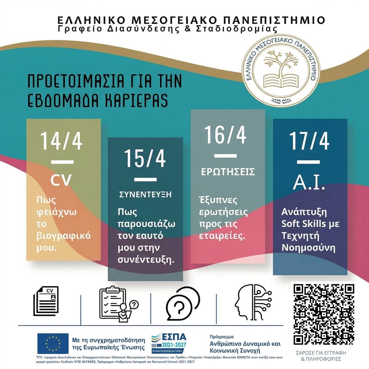 Το Ελληνικό Μεσογειακό Πανεπιστήμιο διοργανώνει την Εβδομάδα Καριέρας 2026