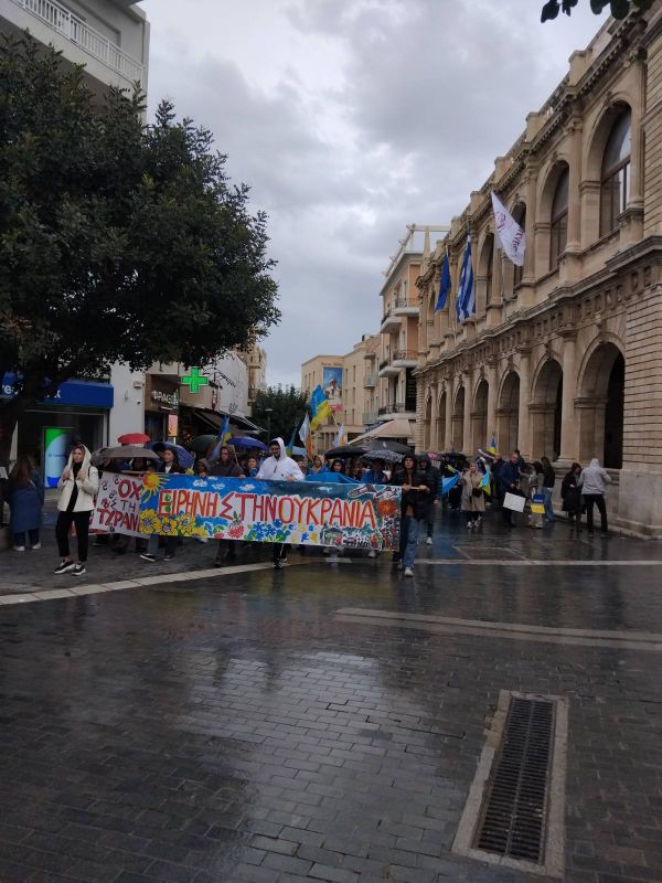 Με μια δυναμική συγκέντρωση στην Πλατεία Ελευθερίας, οι Ουκρανοί κάτοικοι του Ηρακλείου κι όχι μόνο, τίμησαν τη θλιβερή επέτειο των τεσσάρων ετών από τη ρωσική εισβολή στην Ουκρανία