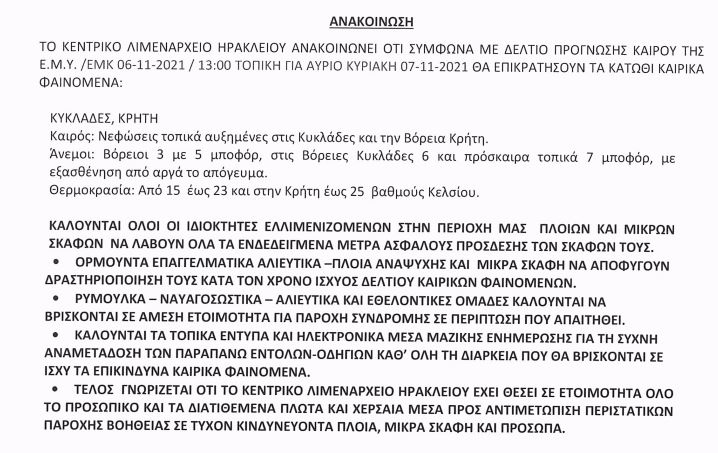 Δείτε αναλυτικά την ανακοίνωση του Λιμεναρχείου: