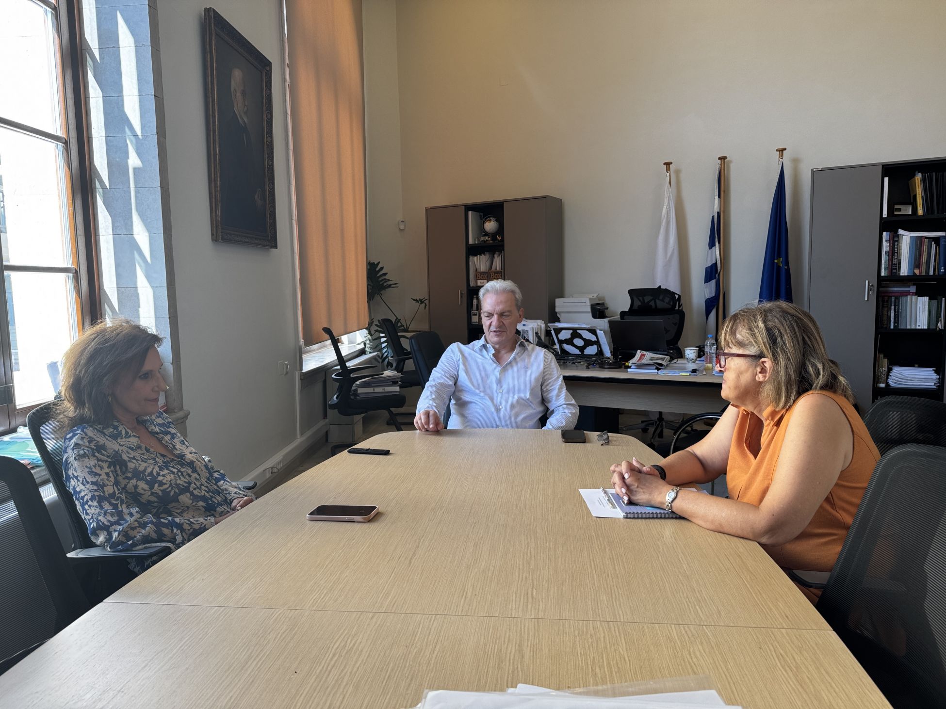 Συνάντηση με την Πρόεδρο της Επιτροπής Εποπτείας της Βικελαίας Δημοτικής Βιβλιοθήκης Τασούλα Μαρκομιχελάκη είχε ο Δήμαρχος Ηρακλείου Αλέξης Καλοκαιρινός μαζί με την Αντιδήμαρχο Πολιτισμού Ρένα Παπαδάκη στη Λότζια το πρωί της Τρίτης 26/8.