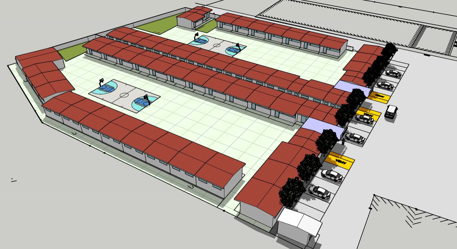 Παράλληλα θα υπάρχουν και ηχομονωμένες ειδικές αίθουσες που θα διευκολύνουν τη λειτουργία των σχολείων. Την ίδια ώρα πυρετώδεις είναι οι εργασίες για τη διαμόρφωση των εξωτερικών χώρων σε συνεργασία της Τεχνικής Υπηρεσίας με τη ΔΕΠΑΝΑΛ και τη ΔΕΥΑΗ, με όλες τις προδιαγραφές ασφαλείας, την δημιουργία των απαραίτητων δικτύων ενέργειας, ύδρευσης, αποχέτευσης κ.α