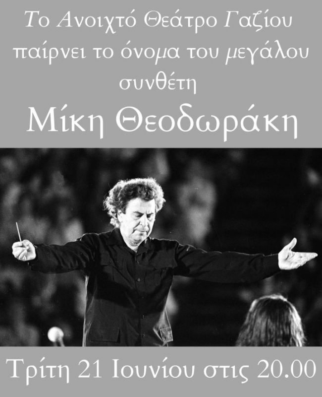 Το όνομα του Μίκη Θεοδωράκη στο Δημοτικό Θέατρο Γαζίου