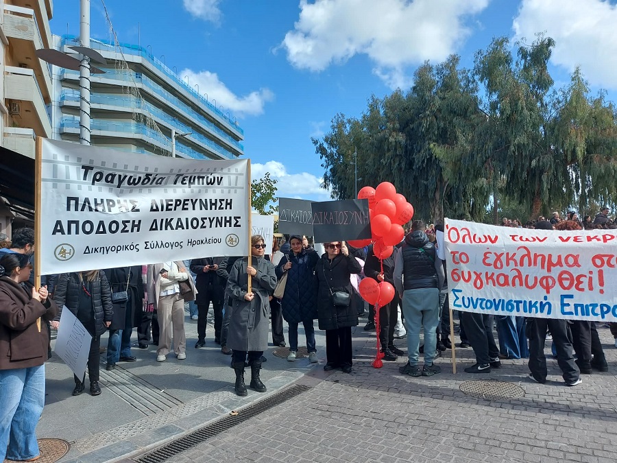 Χιλιάδες πολίτες συγκεντρώνονται από το πρωί τόσο στο Ηράκλειο, όσο και σε όλα τα αστικά κέντρα της Κρήτης, ανταποκρινόμενοι στο κάλεσμα που έχει απευθύνει ο Σύλλογος Συγγενών Θυμάτων Τεμπών για τη συμπλήρωση τριών ετών από τη φονική σύγκρουση των τρένων στις 28 Φεβρουαρίου 2023.