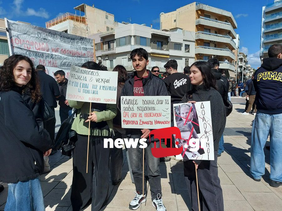 Εκεί τα πανό με τα συνθήματα και τα μηνύματα για την ανάγκη απόδοσης Δικαιοσύνης, τη στήριξη και τη συμπαράσταση προς τις οικογένειες που θρηνούν και την τιμωρία όλων των υπαίτιων, είναι στην πρώτη γραμμή, δίνοντας έναν ξεχωριστό τόνο στην κινητοποίηση του Ηρακλείου.