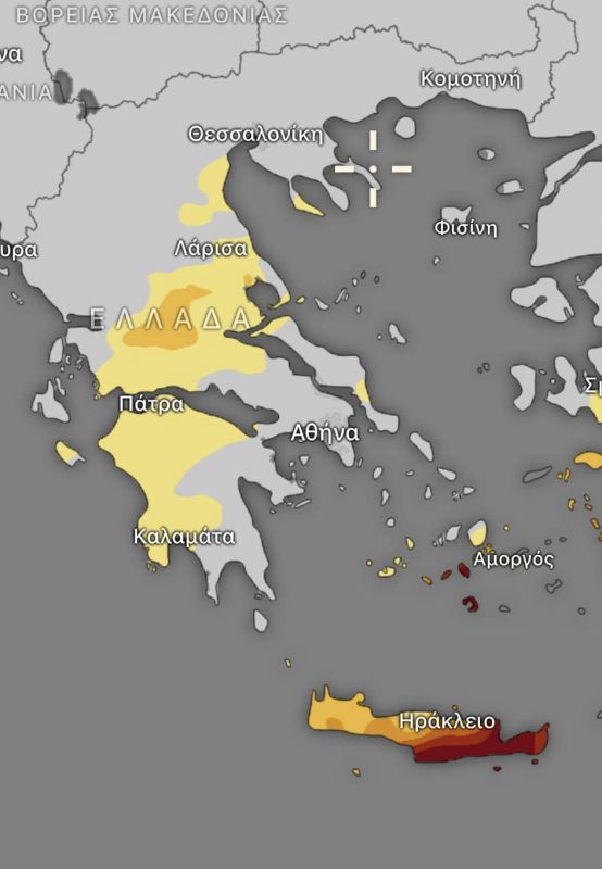Μια από τις περιοχές που βρίσκεται στο «κόκκινο» είναι και η Κρήτη. Ειδικά το νότιο και ανατολικό της τμήμα είναι σε κατάσταση έκτακτης ανάγκης, οπως μπορεί να δει κανείς και απο το χάρτη που δημσοιεύεται σήμερα στην Ομάδα «Μετεωκρήτες».