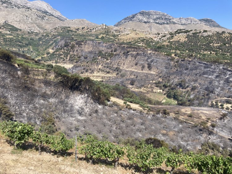 Η φωτιά έκαψε χορτολιβαδική έκταση, θάμνους, ελιές και κάποια αμπέλια κυρίως στις άκρες της χαράδρας. Ωστόσο, δεν σημειώθηκαν σοβαρές υλικές ζημιές ούτε ανθρώπινες απώλειες, κάτι που χαρακτηρίστηκε από τον κ. Χαιρέτη ως «θετική εξέλιξη, δεδομένων των δύσκολων συνθηκών».
