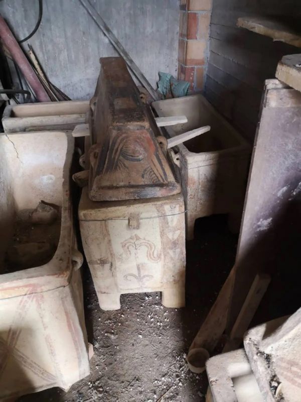 • 7 κιβωτιόσχημες λάρνακες, εκ των οποίων δύο σώζουν αετοματικά καλύμματα, υστερομινωικής ΙΙΙΑ2-Β περιόδου (1400-1300 π.χ.), προερχόμενες από ταφικά σύνολα, κάποιες εκ των οποίων περιέχουσες οστά,