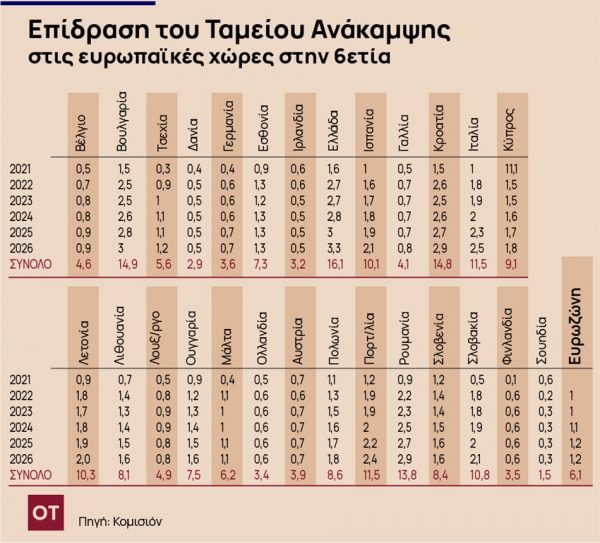 Ειδική έκθεση της Κομισιόν υπό τον τίτλο «Quantifying Spillovers of Next Generation EU Investment» αποτυπώνει την επίδραση των κονδυλίων του Ταμείου στην ανάπτυξη της κάθε χώρας.