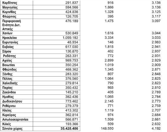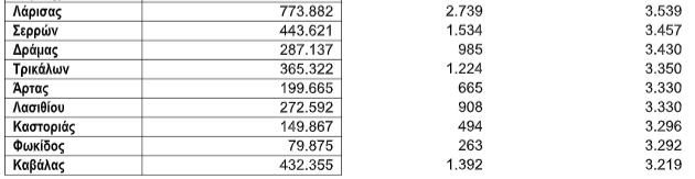 Στον αντίποδα, τα πιο χαμηλά ποσά αποταμιεύσεων/λογαριασμών καταγράφουν όσοι κατοικούν στους Νομούς Κιλκίς (2.632 ευρώ), Αιτωλοακαρνανίας (2.661 ευρώ), Κέρκυρας (2.684 ευρώ), Ηλείας (2.707 ευρώ) και Ρεθύμνου (2.759 ευρώ).